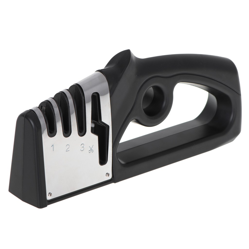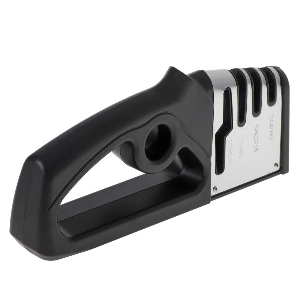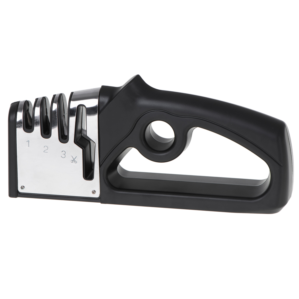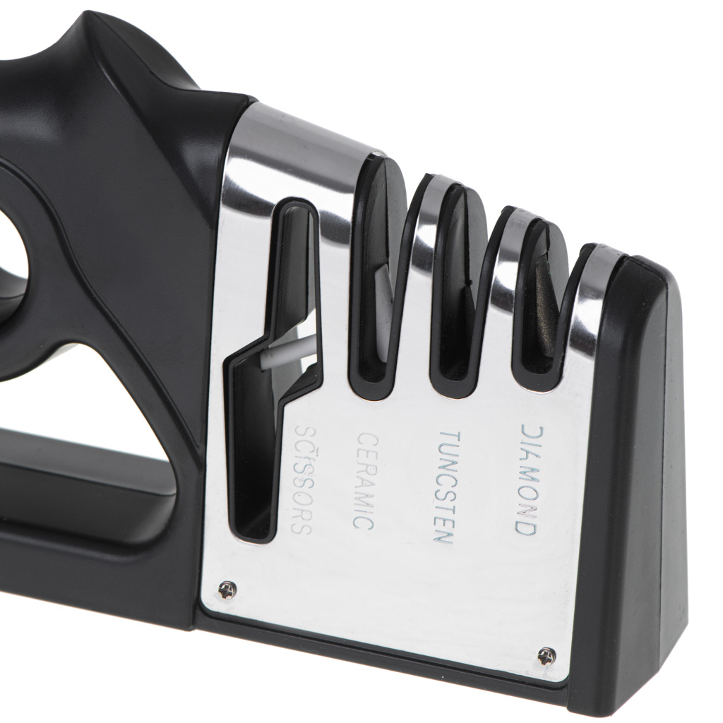 Ostrzałka do noży i nożyczek. Koniec z tępymi ostrzami – ostrzałka umożliwia szybkie i precyzyjne naostrzenie wszystkich noży kuchennych i nożyczek. Antypoślizgowa podstawa. Tworzywo: tworzywo sztuczne + metal + 3 materiały ostrzące. Wymiary: 22×9,5x4cm.