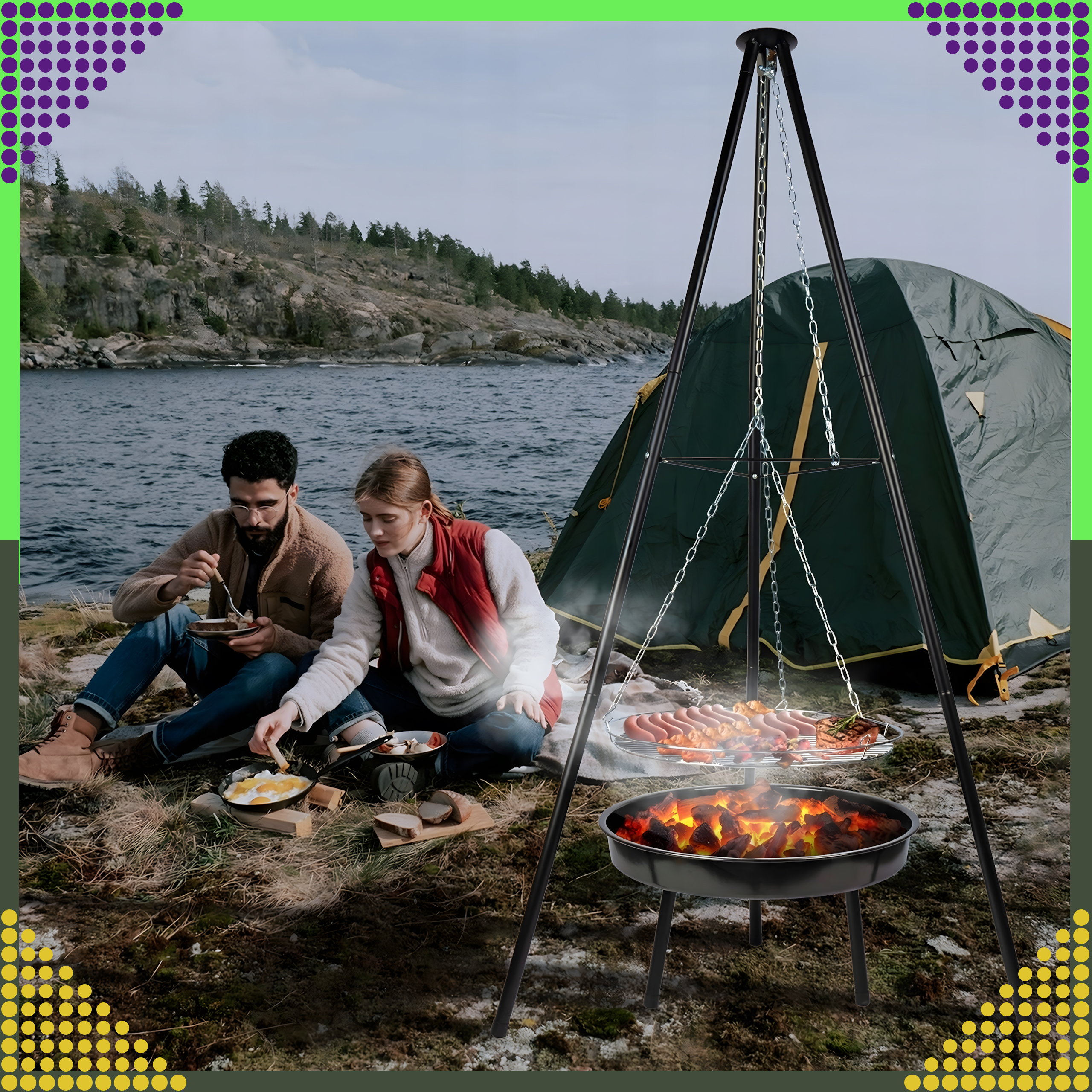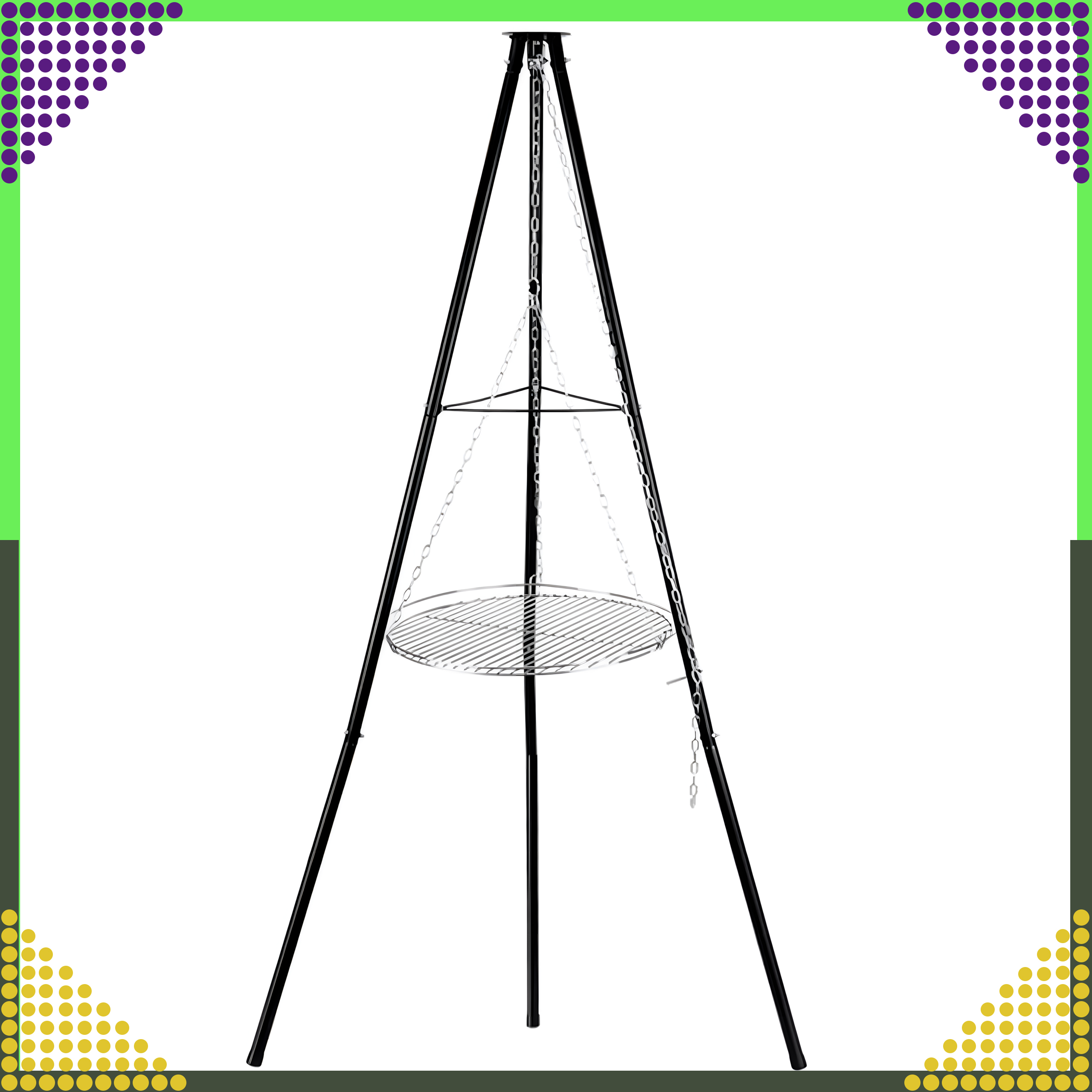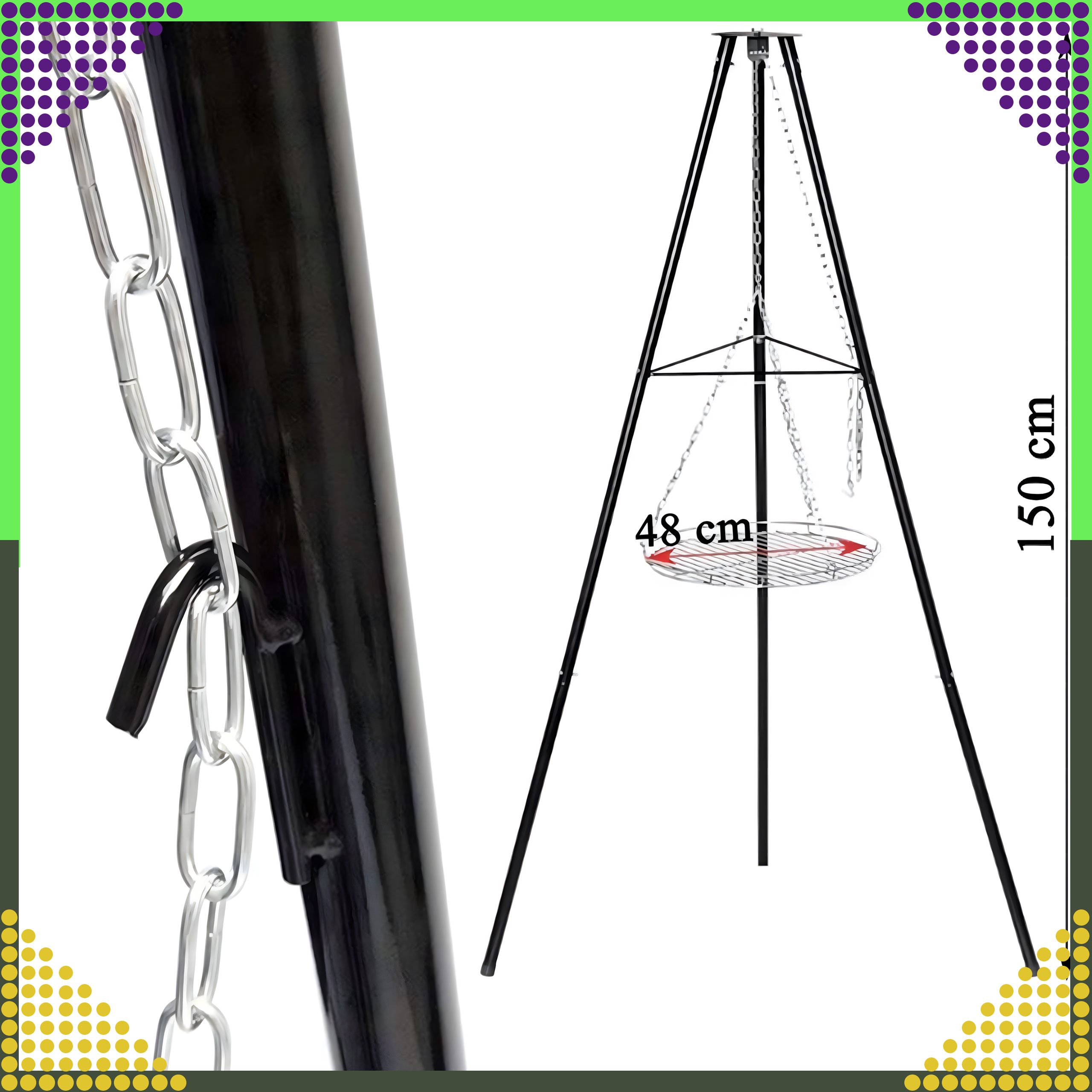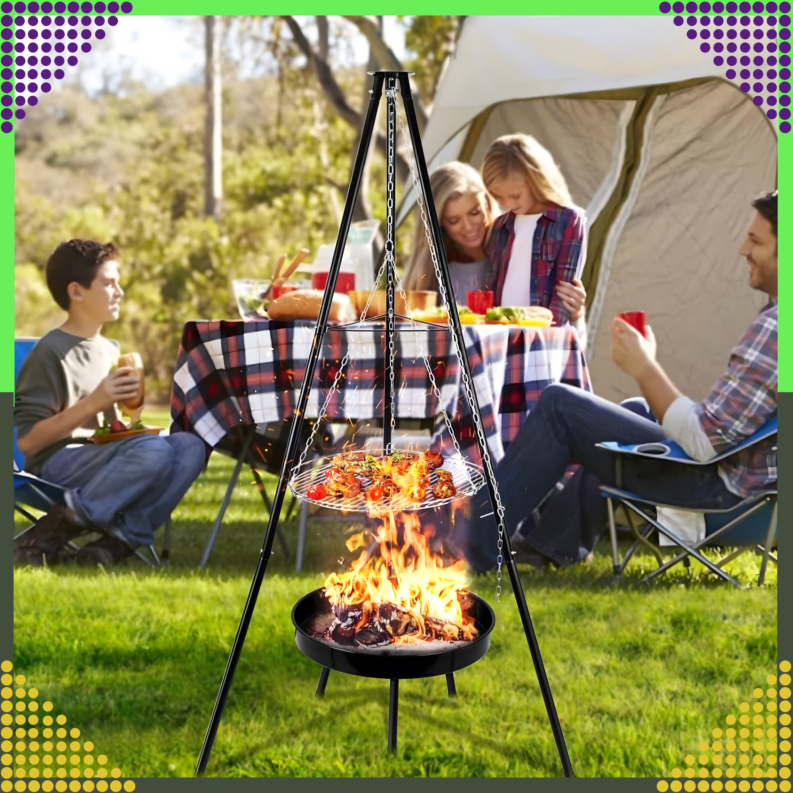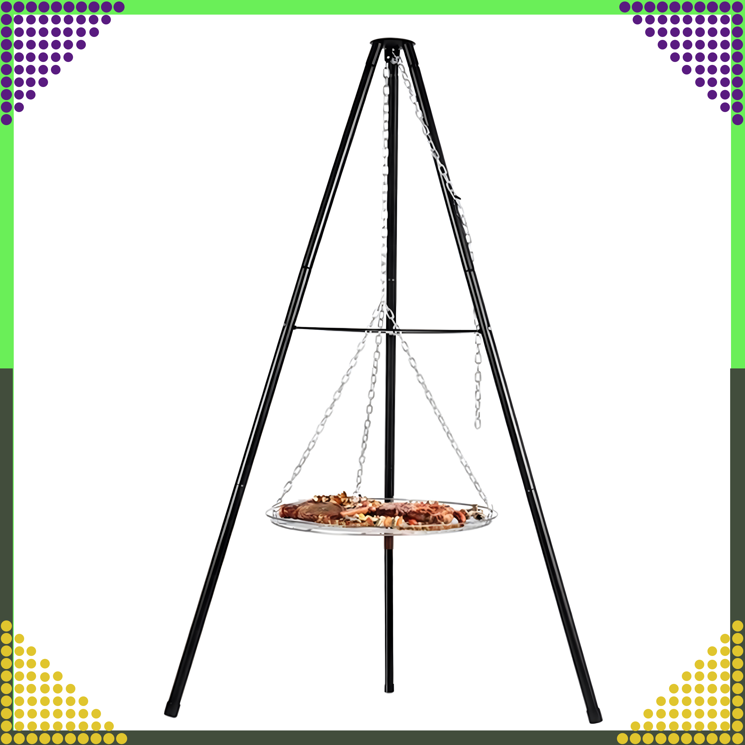⭐ Klasyczny grill na trójnogu z metalowym rusztem ⭐