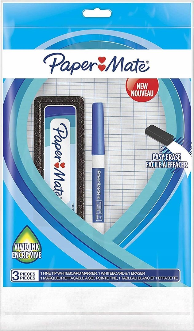 Paper Mate-zestaw marker suchościeralny kolor niebieski + gąbka+tablica (26×18,7cm)