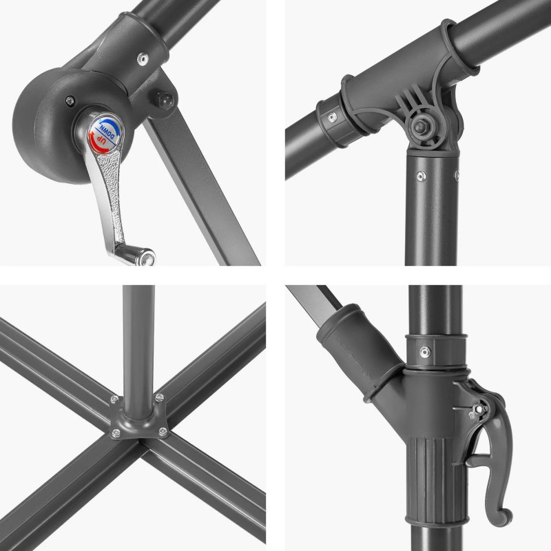 – Parasol posiada bardzo nowoczesny system regulacji wysokości i kąta nachylenia czaszy.