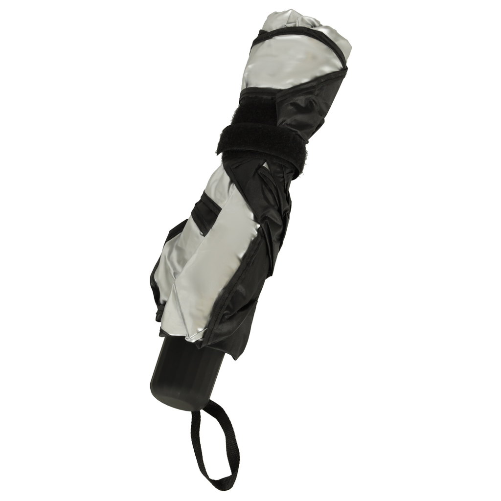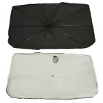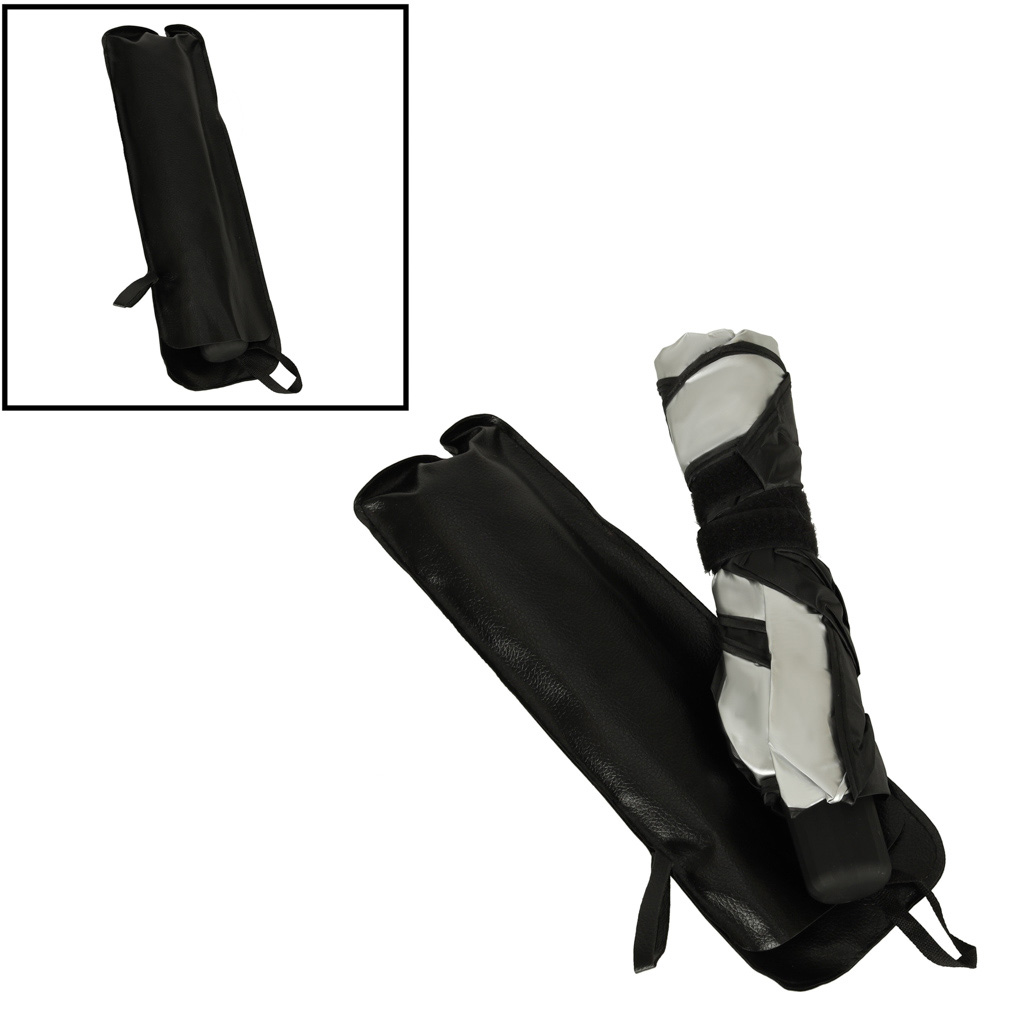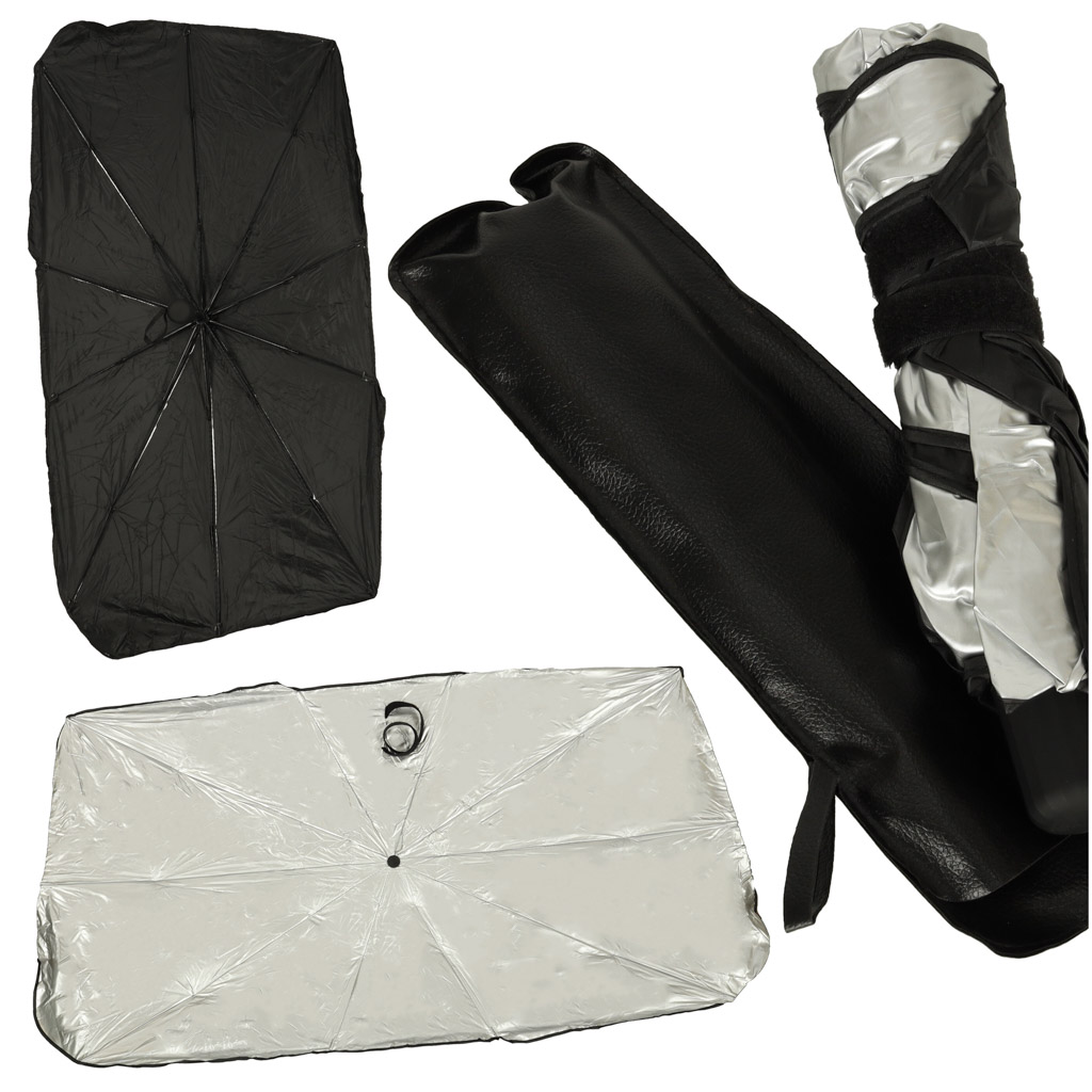 Praktyczny parasol przeciwsłoneczny do samochodu na przednią szybę. Zapobiegnie nagrzewaniu się wnętrza samochodu podczas największych upałów. Łatwa konstrukcja, którą składa się jak zwykły parasol. Po złożeniu zajmuje mało miejsca. Wymiary: 65x110cm.