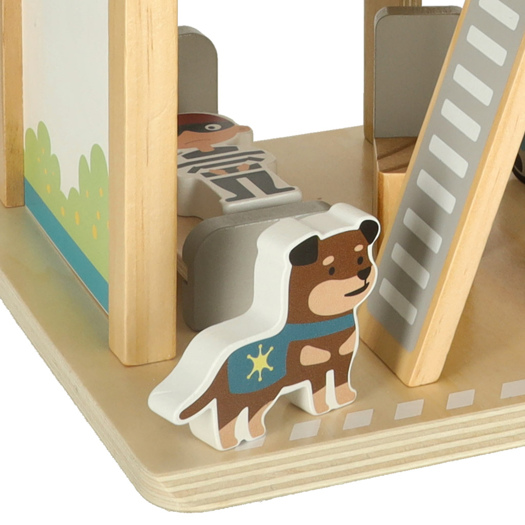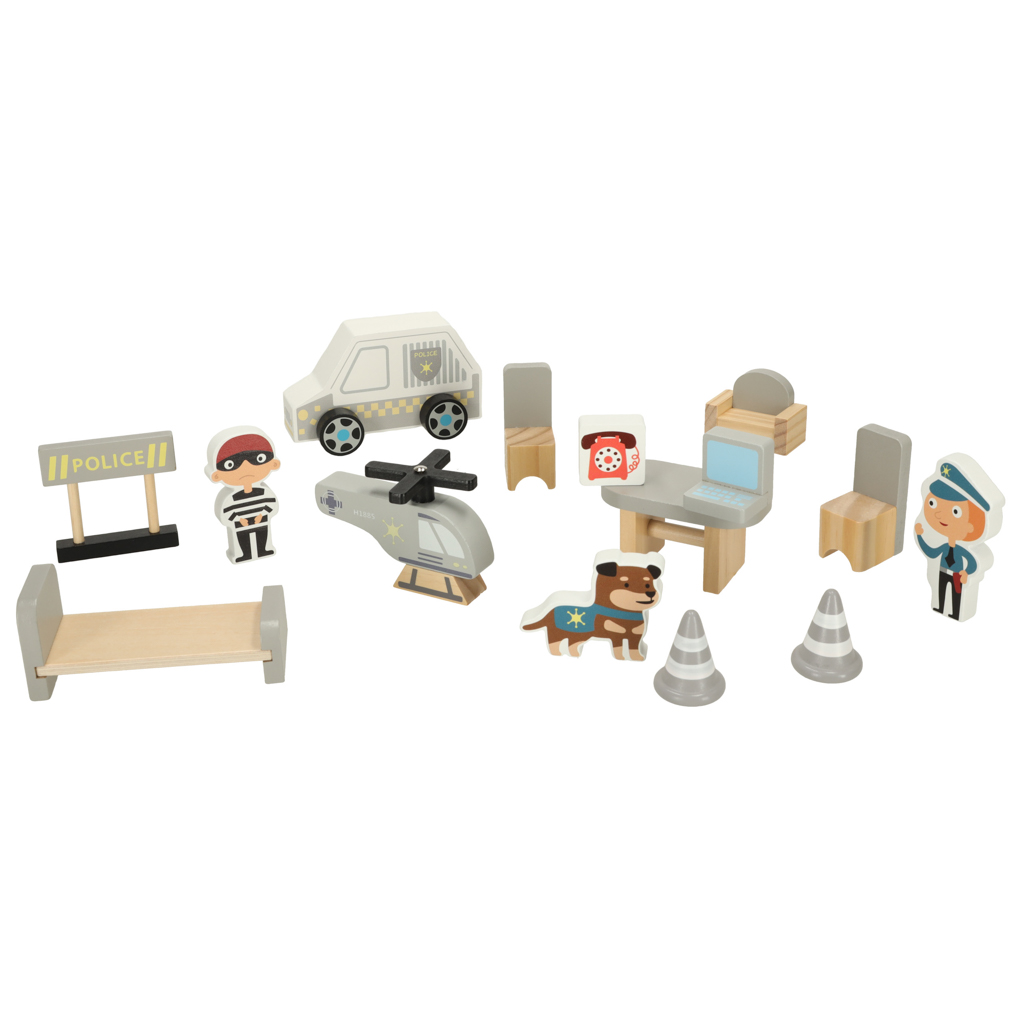 całości wykonany z drewna – posterunek policji oraz akcesoria są wykonane z