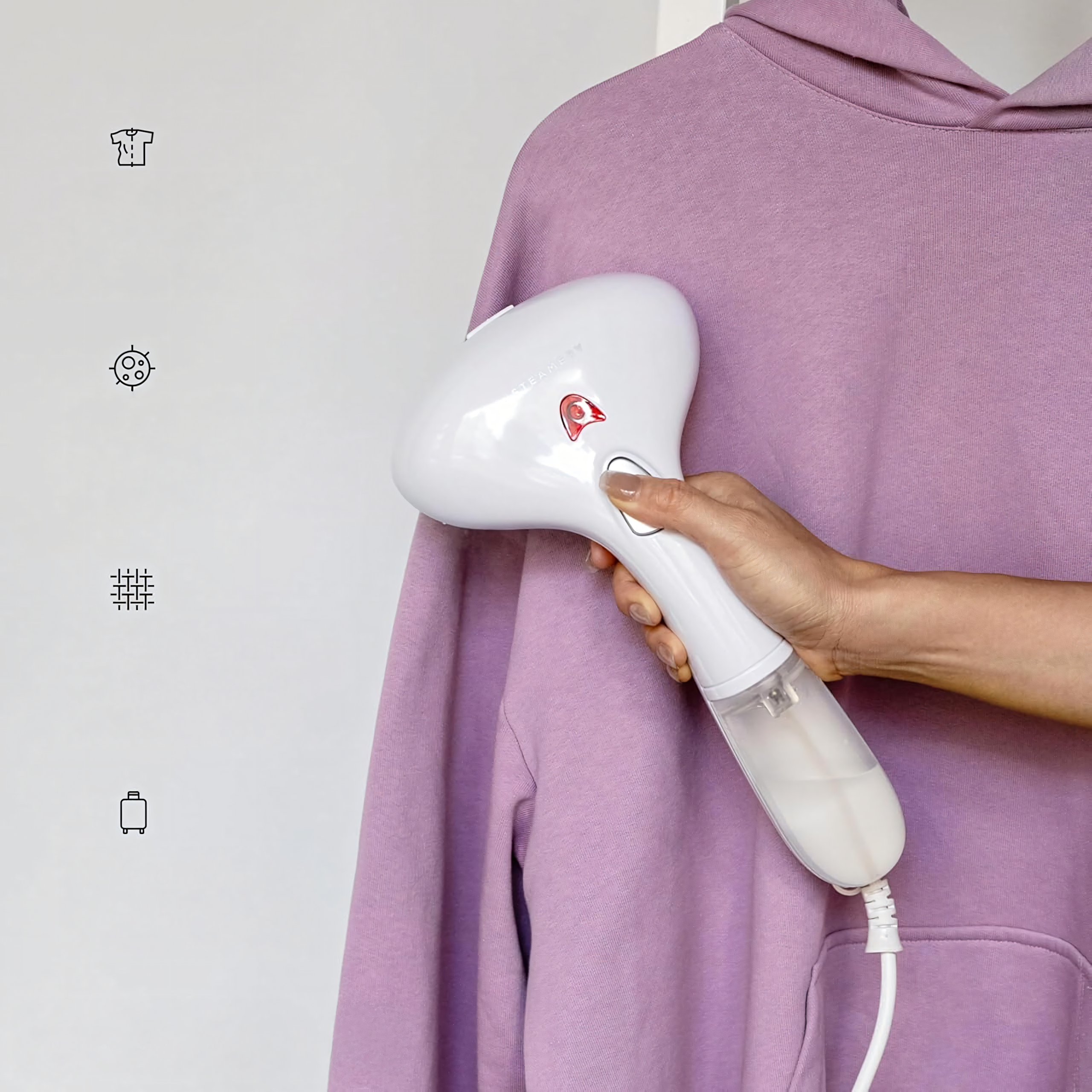 Parownica Steamer 1500W to kompaktowe i poręczne urządzenie do szybkiego prasowania bez deski. Gotowa do pracy w 10 sekund, wytwarza mocny strumień pary, który usuwa zagniecenia z każdej tkaniny. Idealna zarówno w domu, jak i w podróży!