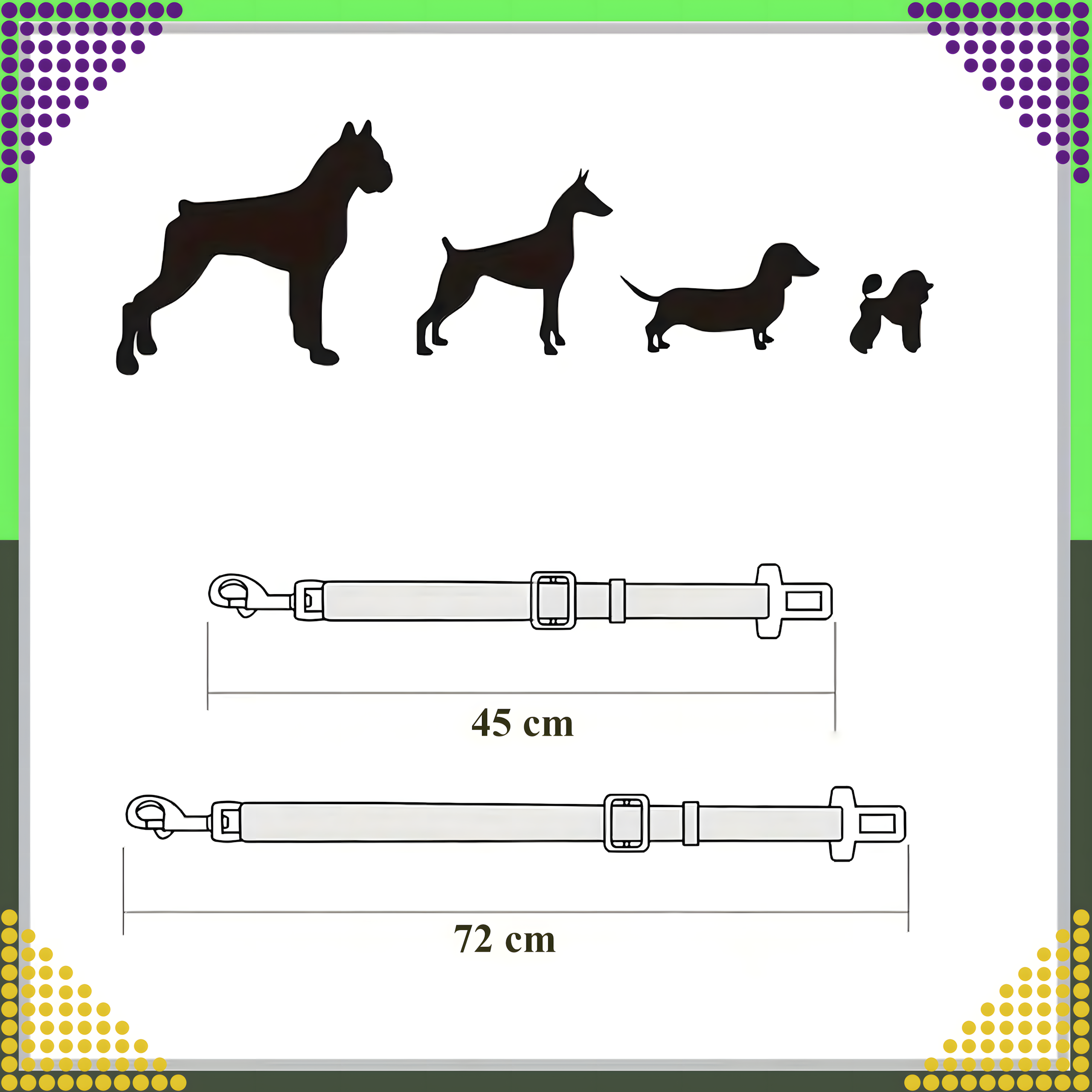 Pas bezpieczeństwa pozwala w bezpieczny sposób podróżować z psem na tylnym siedzeniu bez konieczności instalowania kratki działowej. Pas przypinany jest do szelek samochodowych lub obroży za pomocą karabińczyka.