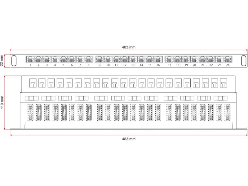 Patch panel A-LAN PK028 (0.5U; 19″; kat. 6; STP; 24xRJ-45)