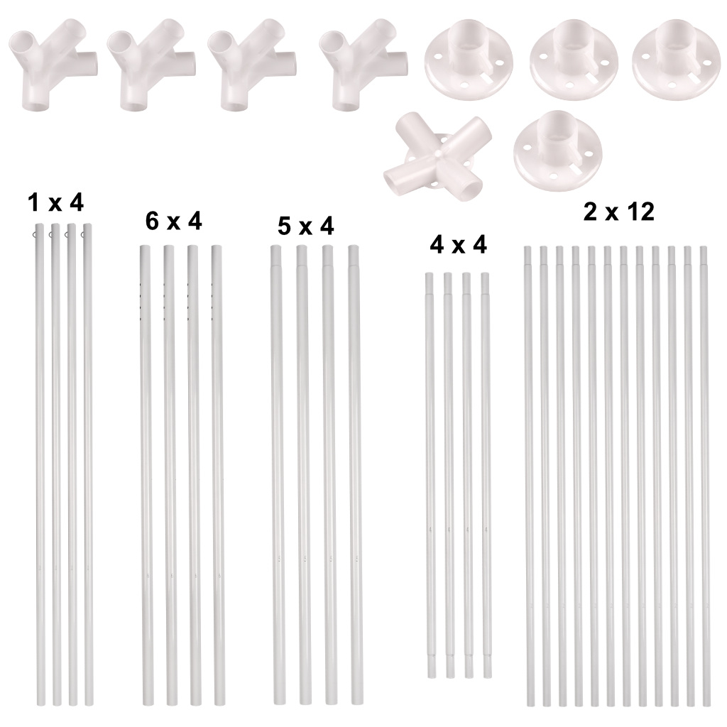 Wymiary pawilonu: 2,5 m x 2,5 m x 2,55 m. Wymiary opakowania: 110 cm x 14 cm x 14,5 cm.