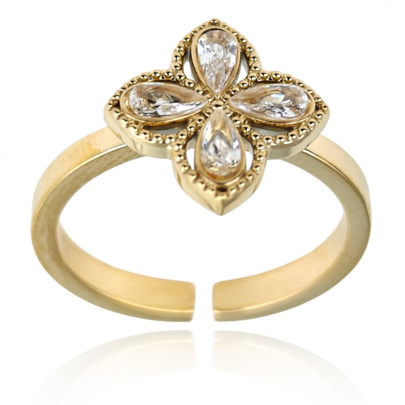 Pierścionek stal chirurgiczna platerowana złotem regulowany cyrkonie PST949