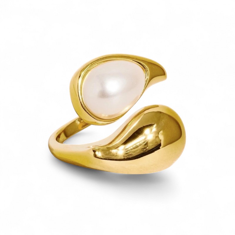Pierścionek stal chirurgiczna platerowana złotem regulowany, R6, R7 PERŁA KROPLA PST946
