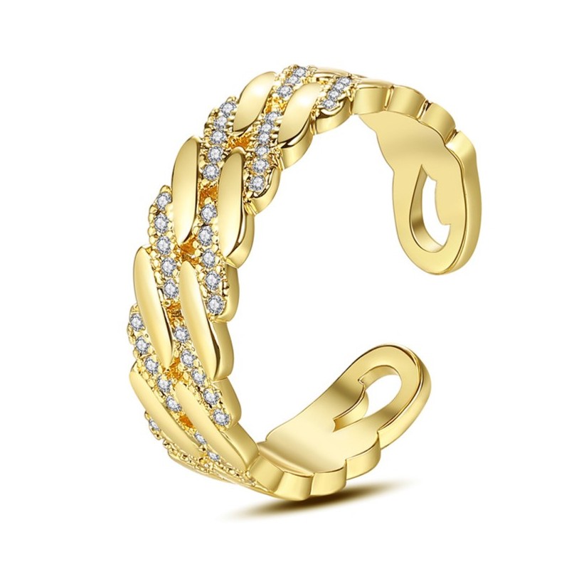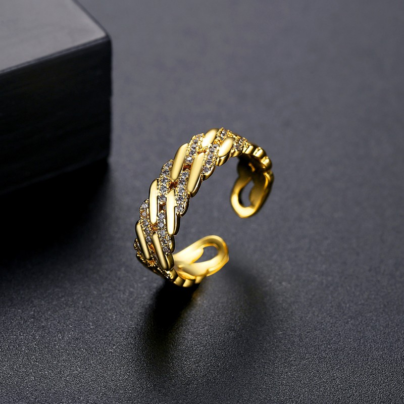 Pierścionek stal chirurgiczna platerowana złotem regulowany, z cyrkoniami PST935