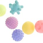 Zestaw kolorowych piłeczek sensorycznych o różnych strukturach z funkcją piszczałki. Idealne do zabawy lub masażu dziecka. Pobudzą zmysł słuchu, wzroku i dotyku. Wspomogą naukę nazw kształtów i kolorów. Tworzywo: guma. Obwód: 20cm.