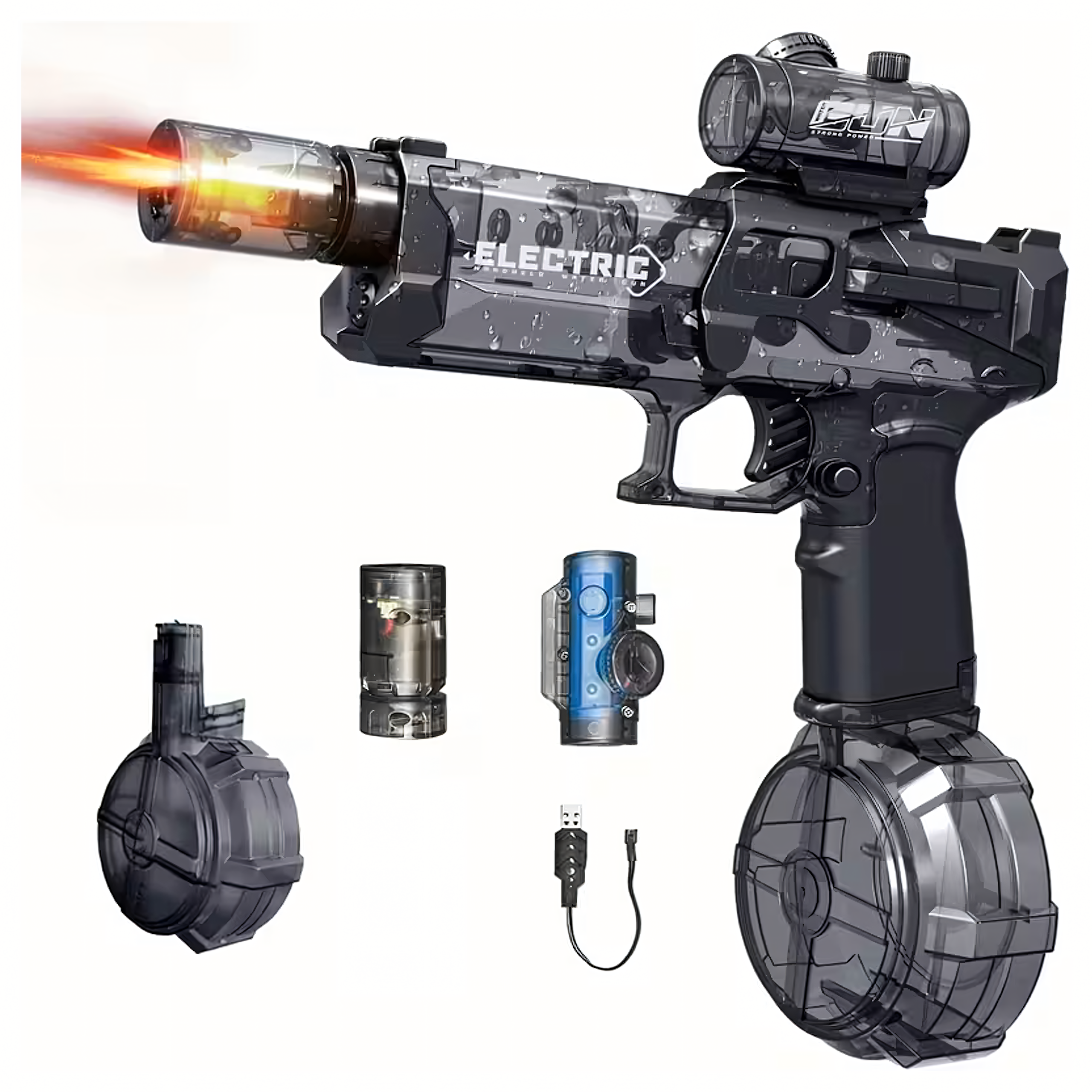 Elektryczny Pistolet Karabin na Wodę LED to prawdziwy hit letnich zabaw! Dzięki automatycznemu systemowi strzelania, dużemu zbiornikowi i wbudowanemu akumulatorowi USB zapewnia nieprzerwaną akcję do 35 minut. Efektowne światła LED dodają widowiskowości, a zasięg aż do 10 metrów gwarantuje przewagę w każdej bitwie wodnej!