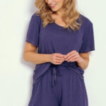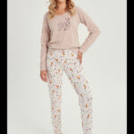 Damska piżama, która łączy wygodę i styl, składa się z bluzki z długim rękawem i spodni o długości 7/8. Bluzka ma dekolt półokrągły oraz ozdobne guziki, które nie są rozpinane, co dodaje jej uroku i elegancji. Luźny, komfortowy krój oraz miękka i przewiewna tkanina zapewniają maksymalną wygodę podczas noszenia. Spodenki mają subtelny nadruk, są bez kieszeni, a długość 7/8 sprawia, że są idealne na każdą porę roku. Elastyczna gumka i wiązanie w pasie gwarantują doskonałe dopasowanie i komfort przez całą noc. To harmonijne połączenie funkcjonalności i stylu, które sprawi, że każda noc będzie wyjątkowo wygodna.