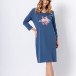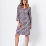 Damska piżama łącząca elegancję z wygodą, idealna na relaksujące wieczory. Bluzka w jednolitym kolorze z rękawem 3/4 charakteryzuje się dekoltem typu V, wykończonym subtelną lamówką, co dodaje jej elegancji i stylu. Luźny, komfortowy krój bluzki wykonany jest z miękkiej i przewiewnej tkaniny, zapewniając wygodę przez całą noc. Spodnie typu 3/4 z nadrukiem, zakończone elastyczną gumką w pasie, gwarantują doskonałe dopasowanie i swobodę ruchów. Idealna kombinacja dla osób ceniących sobie zarówno estetykę, jak i komfort.