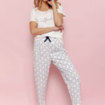 Wygodna i stylowa piżama damska, idealna na ciepłe noce. Koszulka z krótkim rękawem, półokrągłym dekoltem i nadrukiem zapewnia lekkość i komfort noszenia. Oversizeowe krótkie spodenki bez kieszeni, z elastyczną gumką w pasie, gwarantują maksymalną swobodę i dopasowanie bez ucisku. Całość wykonana z miękkiej, przewiewnej tkaniny o luźnym kroju, który nie krępuje ruchów. Piżama pakowana w praktyczny foliowy woreczek, idealna również jako prezent.