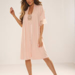 Dwuczęściowa piżamka firmy De lafense wykonana z wysokogatunkowej wiskozy. Idealna na dobry sen i na wspaniały początek dnia przy pierwszej porannej kawie. Luźna koszulka na szerokim ramiączku. Spodnie krótkie, jednolite.