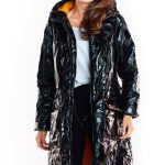 Oversizowy płaszcz zapinana na napy. Uszyty z lekko błyszczącej, ocieplanej tkaniny. Ma podszewkę w kontrastowym kolorze. Pasuje do wielu miejskich stylizacji. Dostępny w dwóch kolorach: głębokiej czerni i srebrnym.