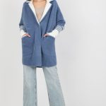 Damski płaszcz z długim rękawem oraz kapturem. Płaszcz zapinany na zamek, z dużymi kieszeniami wsuwanymi.