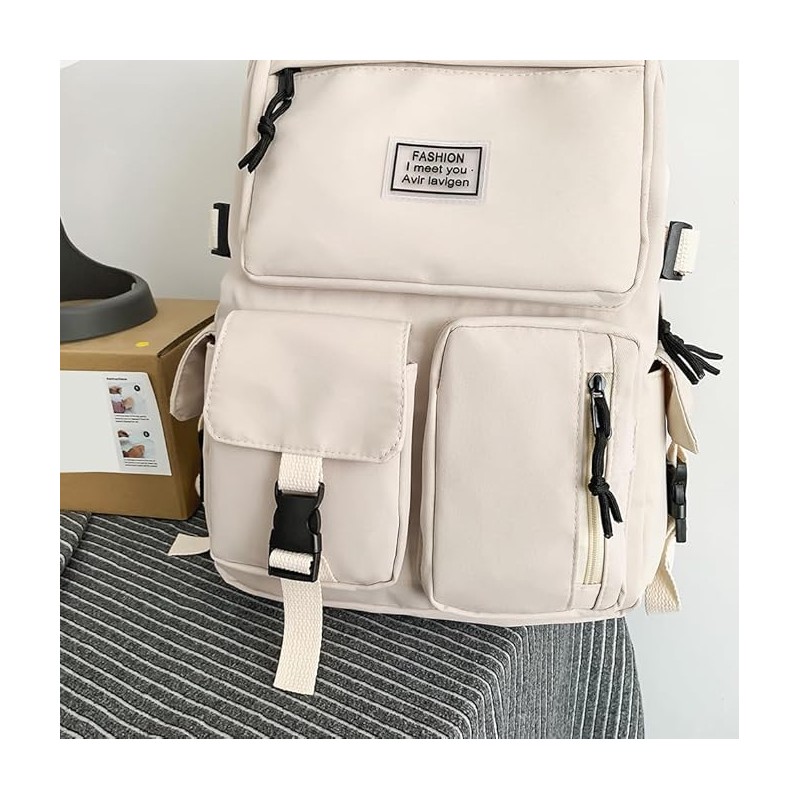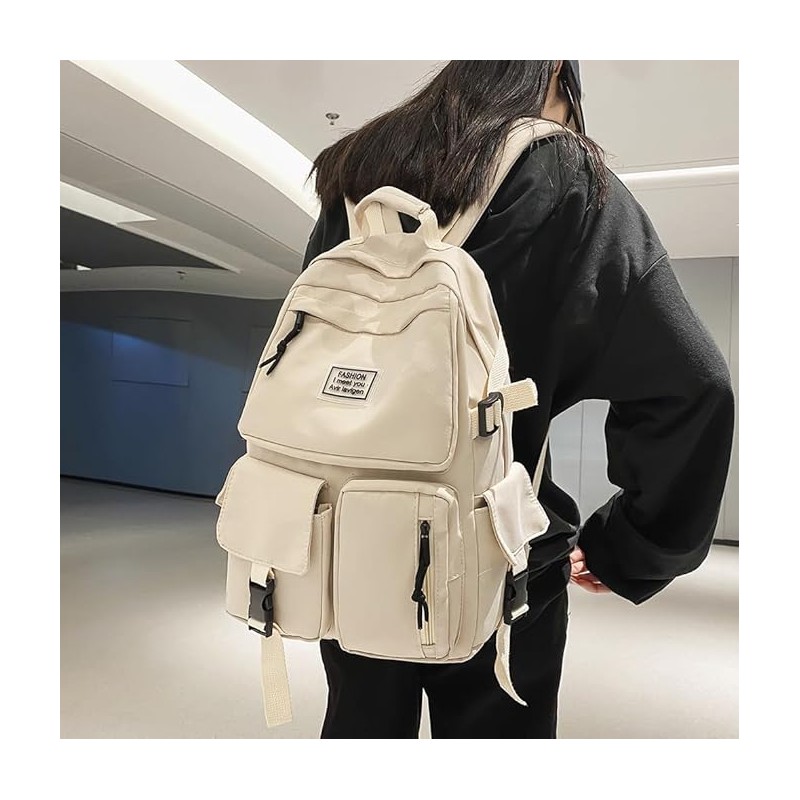 Plecak sportowy szkolny uniwersalny kieszonki kremowy PL164K