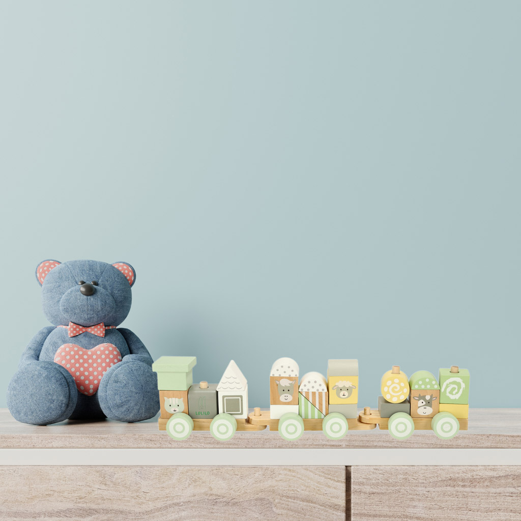 POCIĄG KOLEJKA DREWNIANA PASTELOWY LULILO