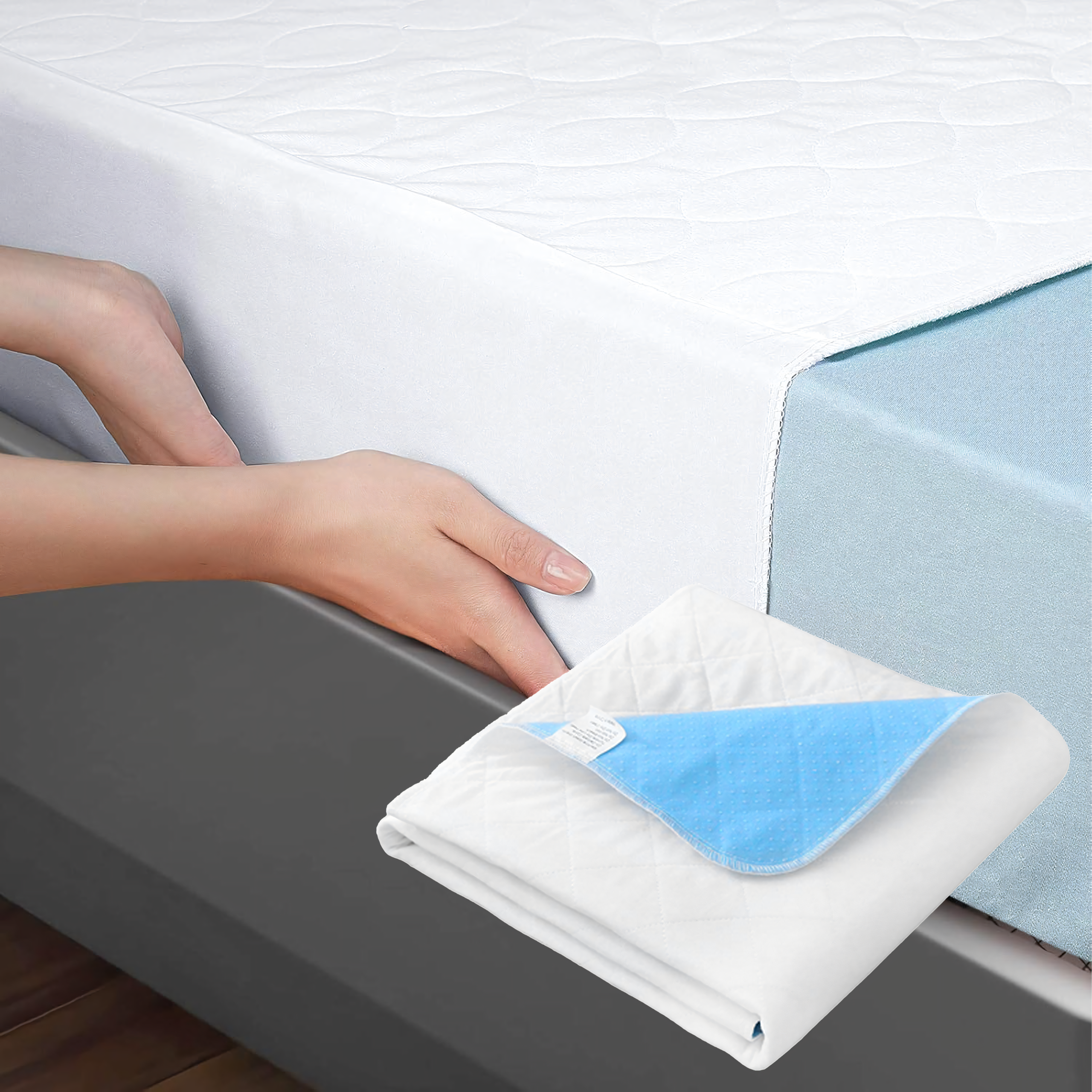 Wielorazowy podkład higieniczny 61×46 cm – wodoodporny, miękki i wygodny, idealny do łóżek, foteli i wózków inwalidzkich. Wytrzymuje nawet 300 prań w 95°C, chroni materac i zapewnia komfort użytkowania w domu, szpitalu czy podróży.