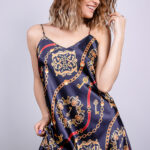 Elegancki, satynowy peniuar w pięknym, srebrnym kolorze. Krój luźny, inspirowany zgrabnym kimono, wiązany w talii paskiem, dołączonym do zestawu. Satyna o subtelnym, perłowym blasku, pięknie się prezentuje.