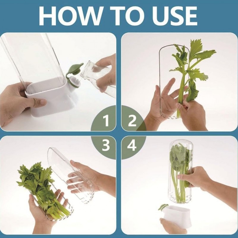 Pojemnik ma dobrą wodoszczelność, pomaga utrzymać odpowiednią wilgotność ziół i warzyw przedłużając ich świeżość. Sposób użycia: