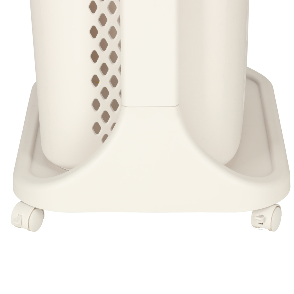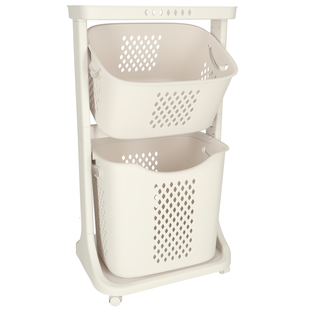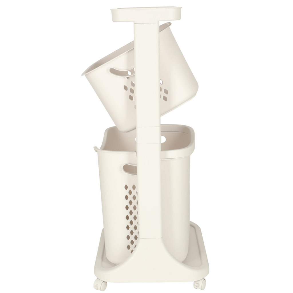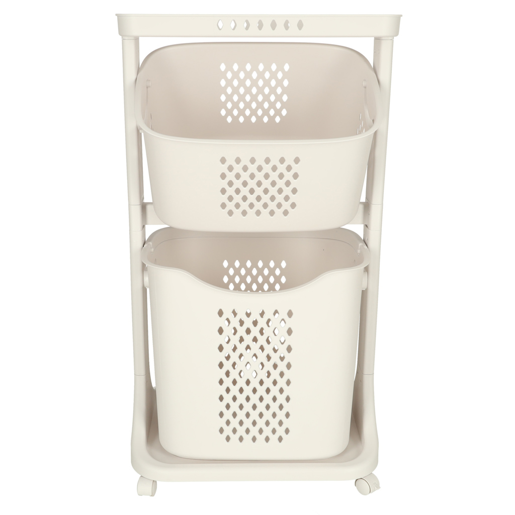 Dwupoziomowy organizer na kółkach ułatwiający uporządkowanie przeróżnych rzeczy. Największy kosz posiada rączkę dla łatwego przenoszenia. Tworzywo: plastik. Wymiary: 44 cm x 77,5 cm x 32 cm.