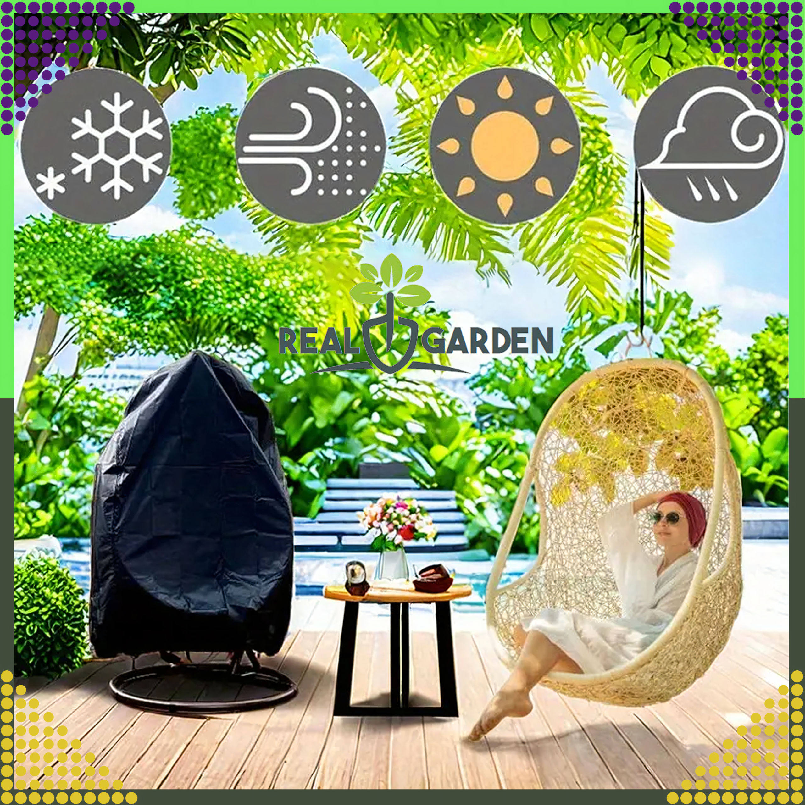 Pokrowiec na kosz ogrodowy typu jajko służy zabezpieczeniu fotela przed słońcem, deszczem, wiatrem, śniegiem czy kurzem. Posiada wewnętrzną powłokę UV odbijającą światło.