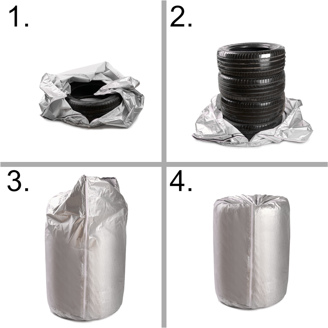 – pokrowiec pomaga utrzymać porządek w garażu lub piwnicy, chroniąc opony przed