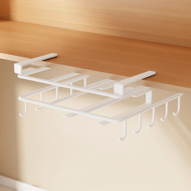 Półka, uchwyt podwieszany do szafki, organizer kuchenny z haczykami, biały OR116B