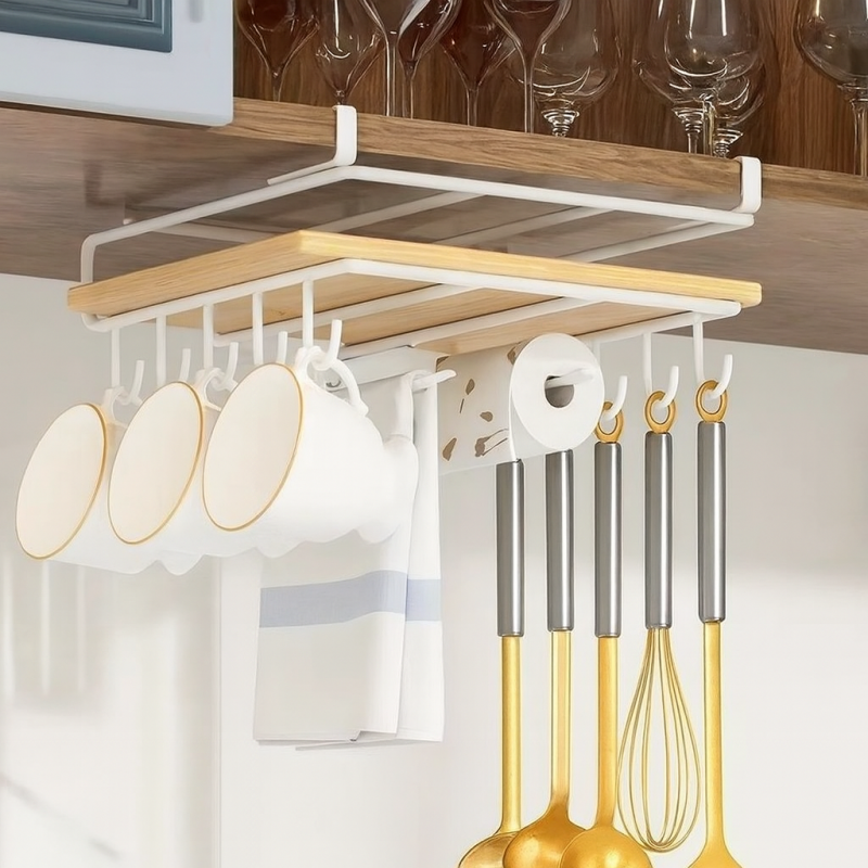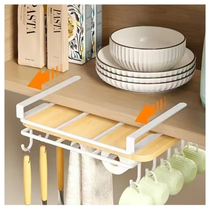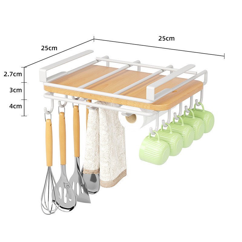 Ta praktyczna półka idealnie nadaje się do powieszenia deski, ręcznika papierowego, kubków czy przyborów kuchennych Specyfikacja: