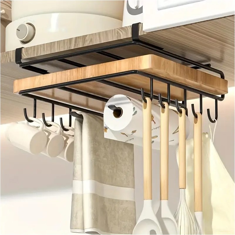 Ta praktyczna półka idealnie nadaje się do powieszenia deski, ręcznika papierowego, kubków czy przyborów kuchennych Specyfikacja: