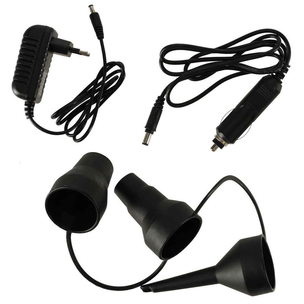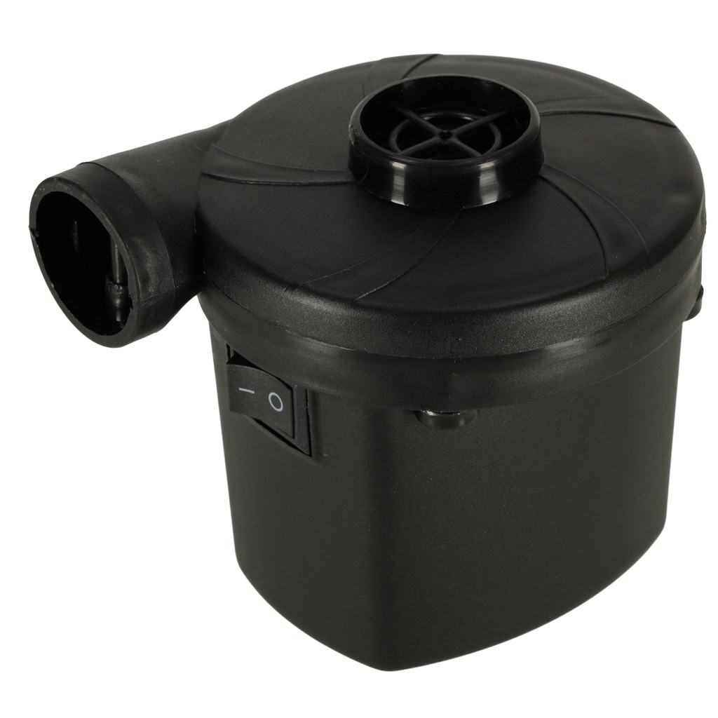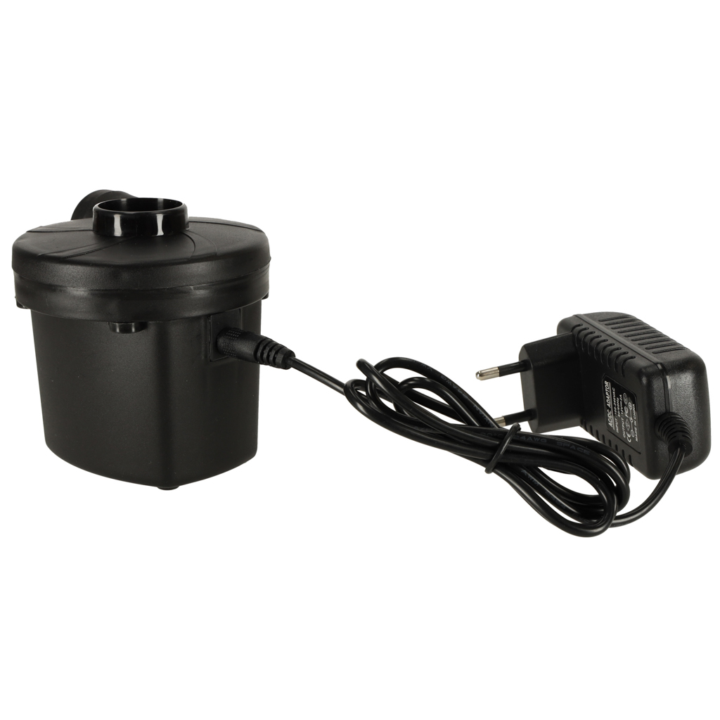 Pompka elektryczna do pompowania materacy oraz akcesoriów basenowych. Również możliwość spuszczania powietrza. W zestawie trzy końcówki. Możliwość podłączenia do gniazda sieciowego (240 V) oraz samochodowego (12 V). Wymiary: 9 cm x 7cm.