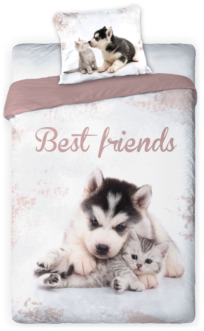 Pościel młodzieżowa 02 BEST FRIENDS PIES I KOT komplet 140x200cm + poduszka 70x90cm