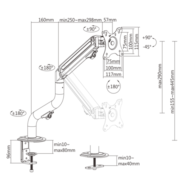 GEMBIRD BIURKOWE REGULOWANE RAMIĘ/UCHWYT NA MONITOR 17-32, VESA 100X100MM, DO 8 KG