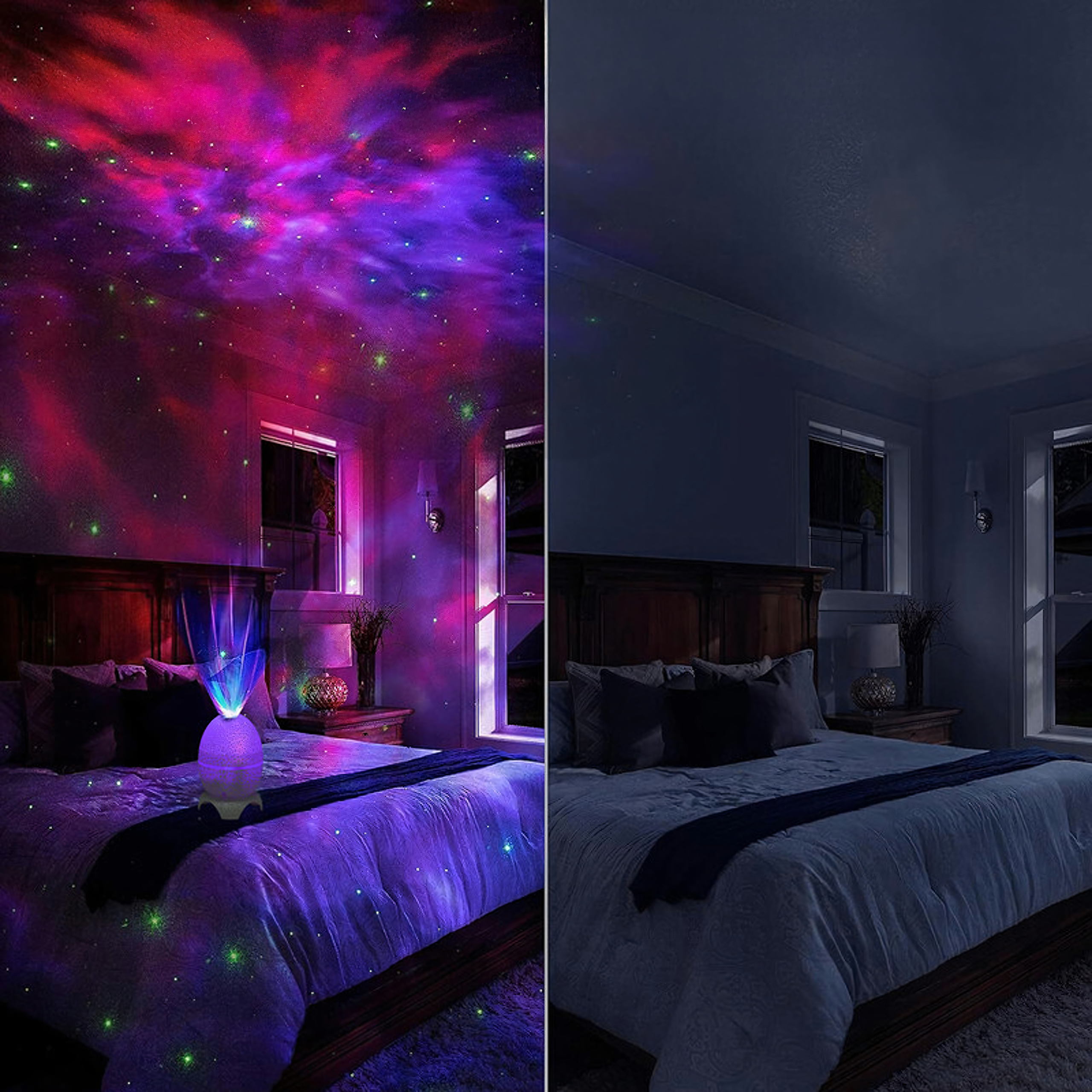 Zamień swój pokój w kolorową galaktykę z muzyką w tle! Nietuzinkowy projektor w kształcie jaja dinozaura to połączenie designerskiej lampki, projektora gwiazd i głośnika Bluetooth. To nie tylko dekoracja – to magiczna atmosfera i relaks w jednym!