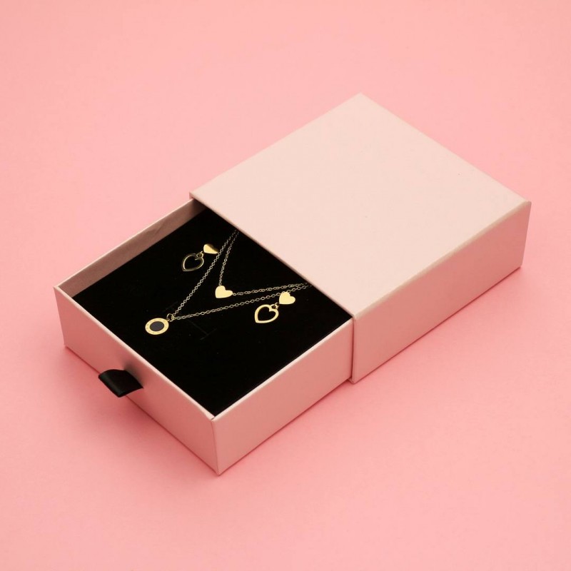 Eleganckie pudełeczko ozdobne – prezentowe na biżuterię W środku poduszeczka w kolorze czarnym.
