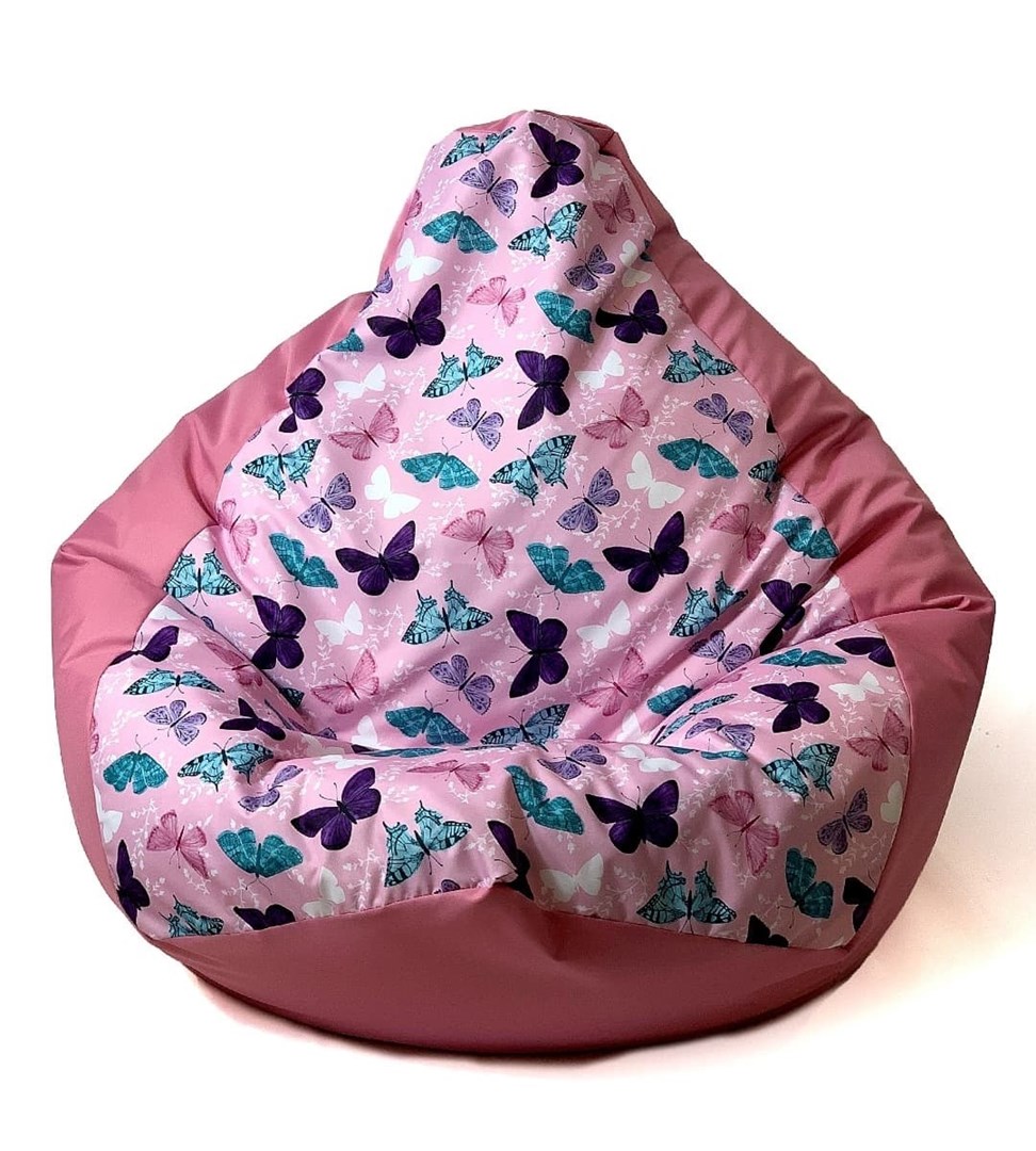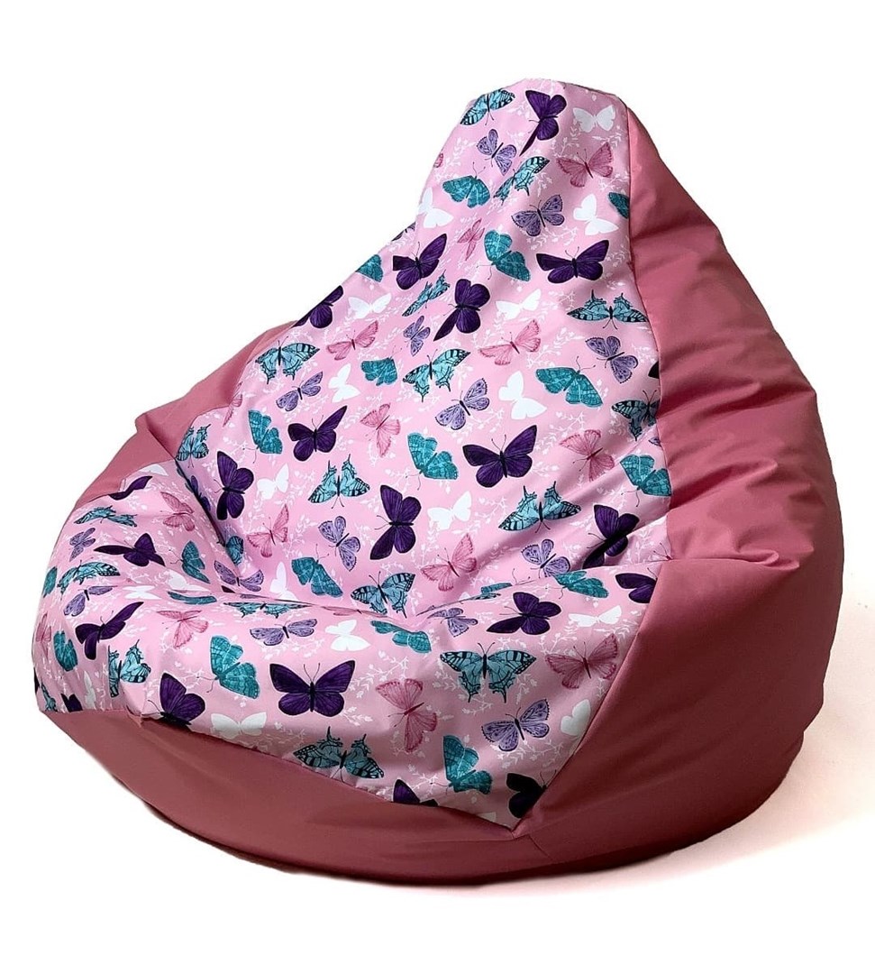 Pufa worek sako GRUSZA DRUK ciemny róż-motyle XXL 140×100
