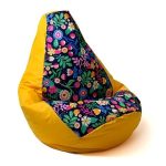Pufa worek sako GRUSZA DRUK żółty-kwiat XL 130×90
