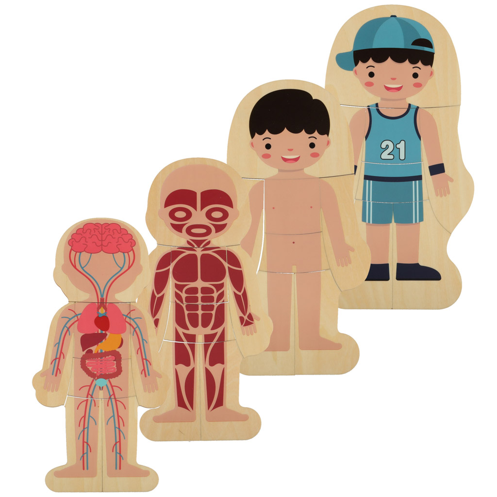 Puzzle drewniane warstwowe budowa ciała montessori chłopiec