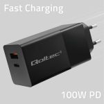 QOLTEC ŁADOWARKA SIECIOWA 18W | 5-12V | 1.5-3A | USB TYP C PD | USB QC 3.0 | CZARNA