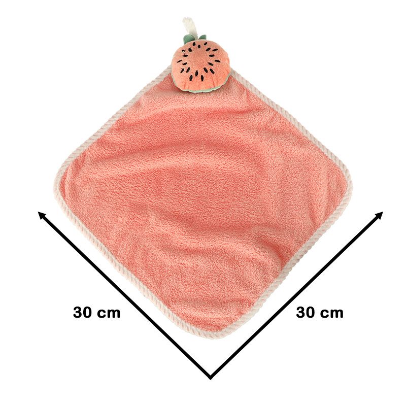 Malutki ręcznik dla dzieci do rąk – w różowym kolorze i z uroczym arbuzem. Posiada pętelkę do zawieszenia. Jest niezwykle mięciutki i przyjemny w kontakcie ze skórą. Tworzywo: poliester, nylon. Wymiary: 30 cm x 30 cm.