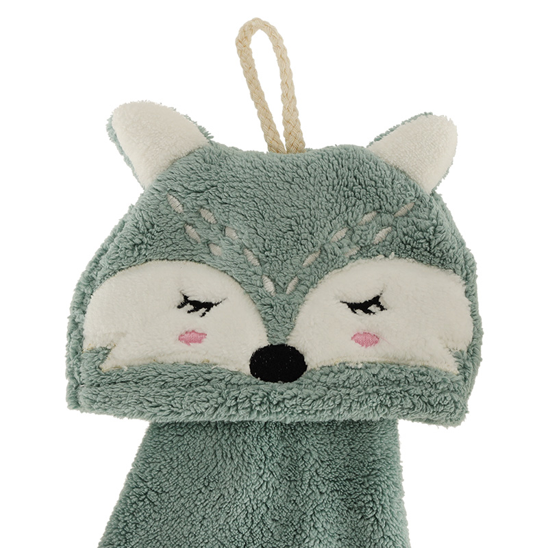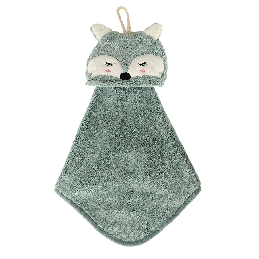 Mięciutki ręcznik dziecięcy do rąk z uroczym liskiem. Można go złożyć i schować w misia. Wszyta pętelka umożliwia zawieszenie go na haczyku. Jest niezwykle mięciutki i przyjemny w kontakcie ze skórą. Tworzywo: poliester, nylon. Wymiary: 42 cm x 25 cm.