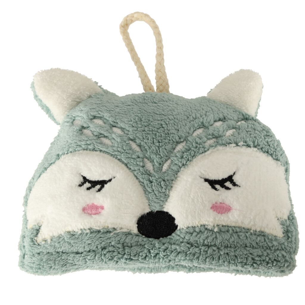 Ręcznik posiada praktyczną kieszonkę w formie główki liska, która
