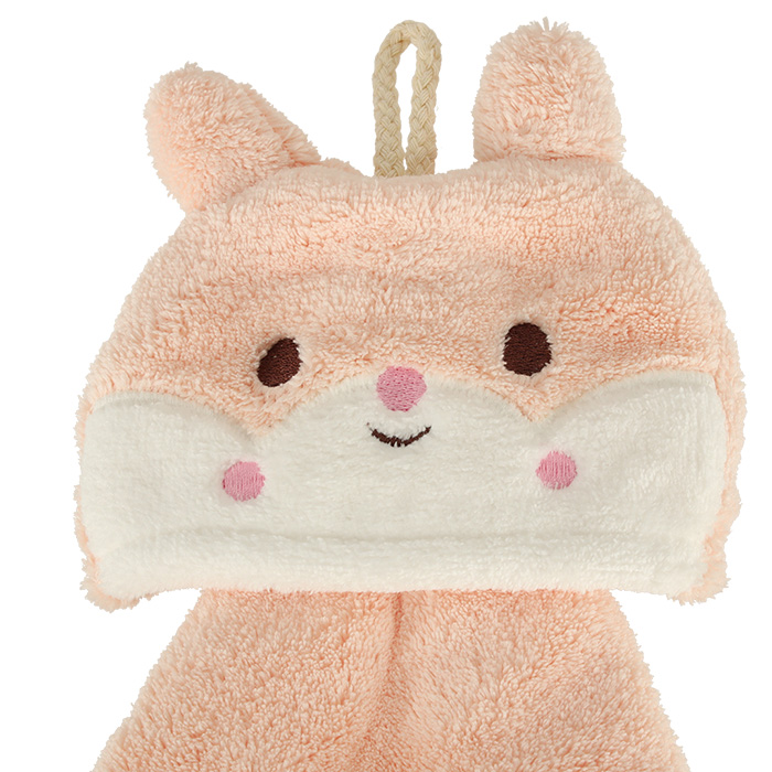 Mięciutki ręcznik dziecięcy do rąk z uroczym królikiem. Można go złożyć i schować w misia. Wszyta pętelka umożliwia zawieszenie go na haczyku. Jest niezwykle mięciutki i przyjemny w kontakcie ze skórą. Tworzywo: poliester, nylon. Wymiary: 42 cm x 25 cm.