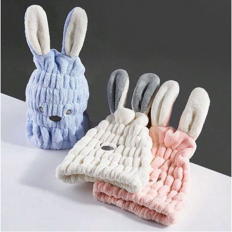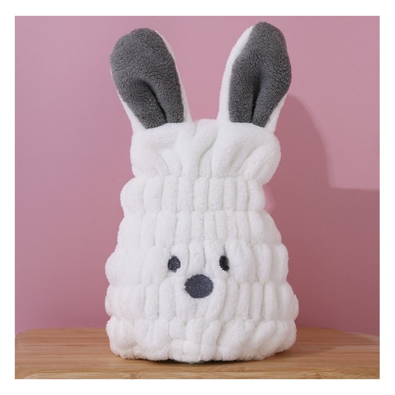Ręcznik, turban do suszenia włosów – biały króliczek Kompaktowy i świetnie wchłaniający ręcznik do włosówPochłania 20% więcej wody, niż zwykły ręcznik.