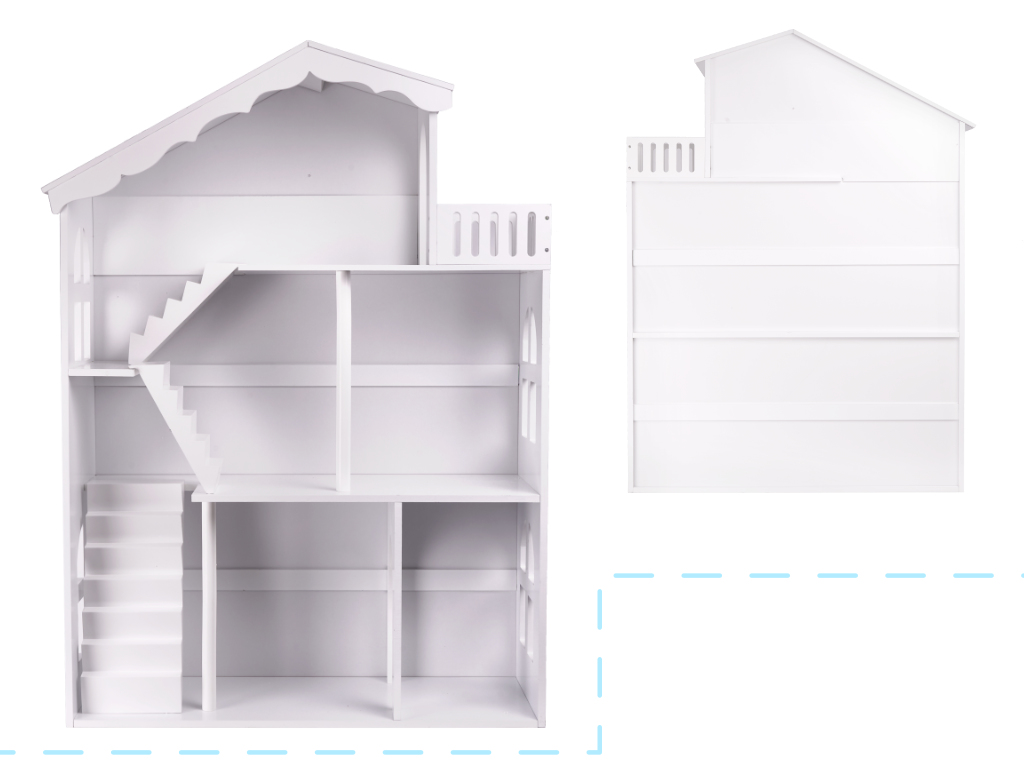 Rewelacyjny regał na książki w kształcie domku. Idealnie wpasuje się do każdego dziecięcego pokoju. Piękny design przyciągnie uwagę malucha. Regał składa się z 3 pięter, mogących służyć jako mebel lub domek dla lalek. Wysokość: 116cm. Szerokość: 82,5cm.