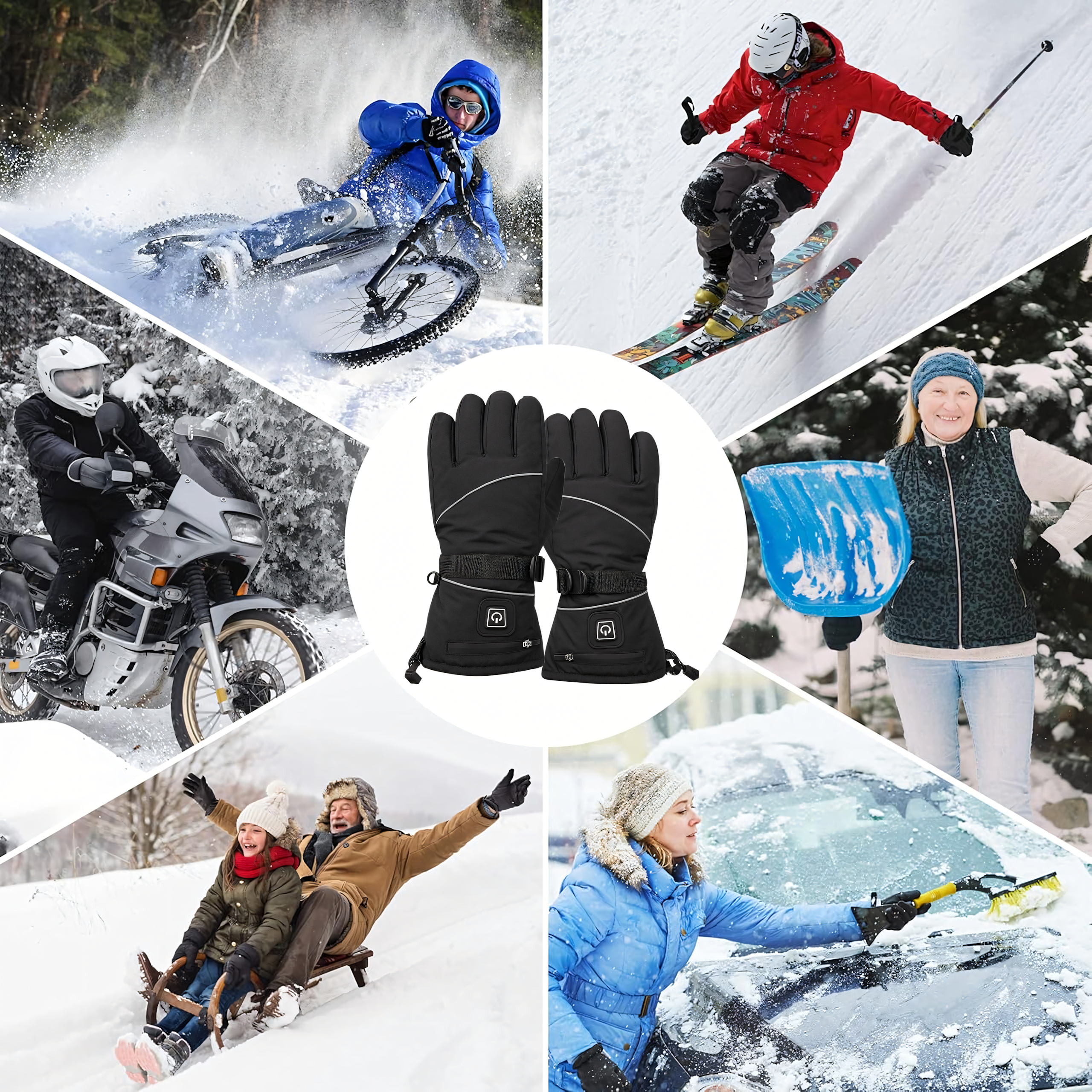 Podgrzewane rękawice zimowe z 2x powerbank 4000mAh – idealne na narty, spacery i zimowe wyprawy! Wodoodporne, z trzema poziomami grzania (45℃, 55℃, 65℃), zapewniają ciepło nawet do 6 godzin. Łatwe w obsłudze, bezpieczne i wygodne – już nigdy nie zmarzniesz w dłonie!