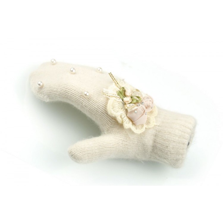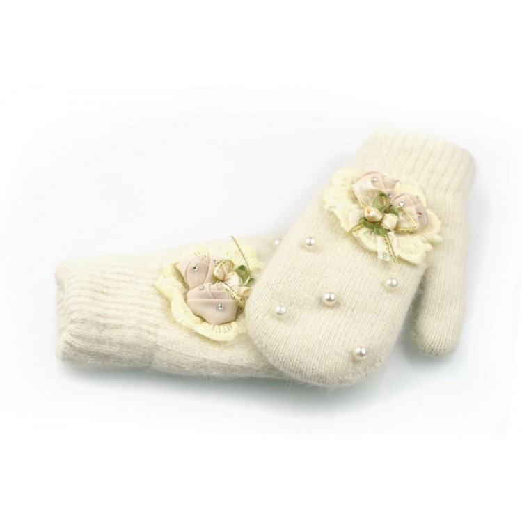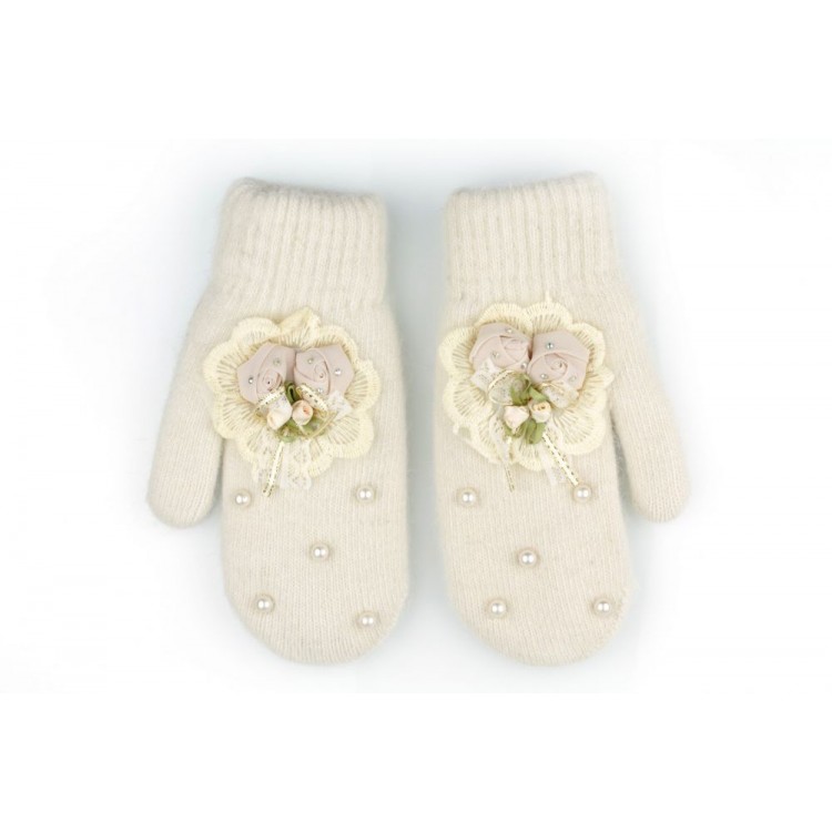 RĘKAWICZKI CUTE KWIATY I PEREŁKI KREMOWE REK130