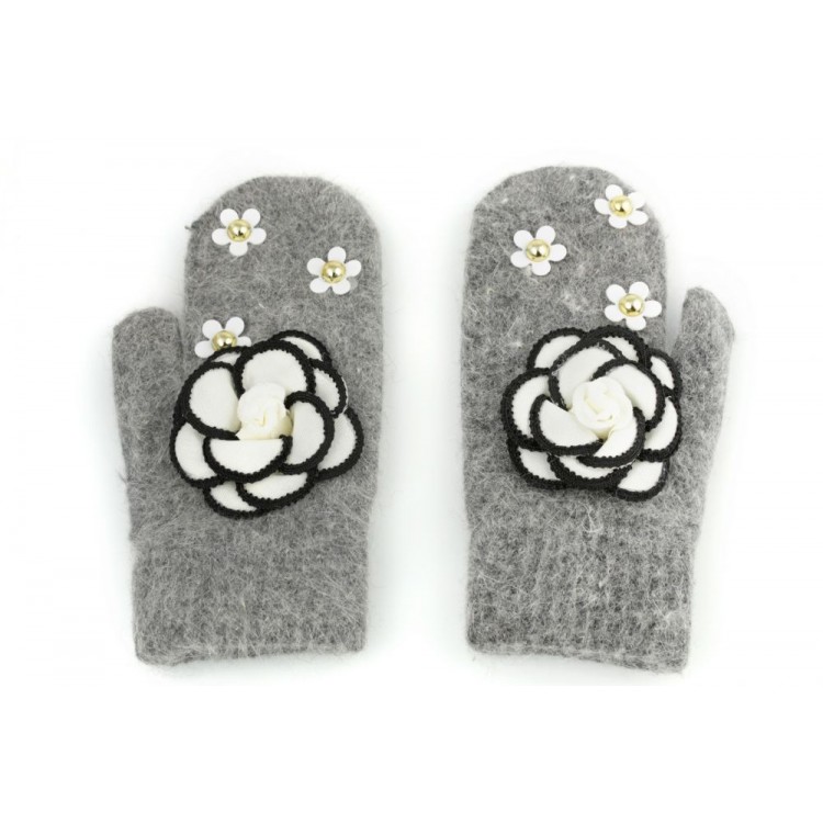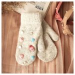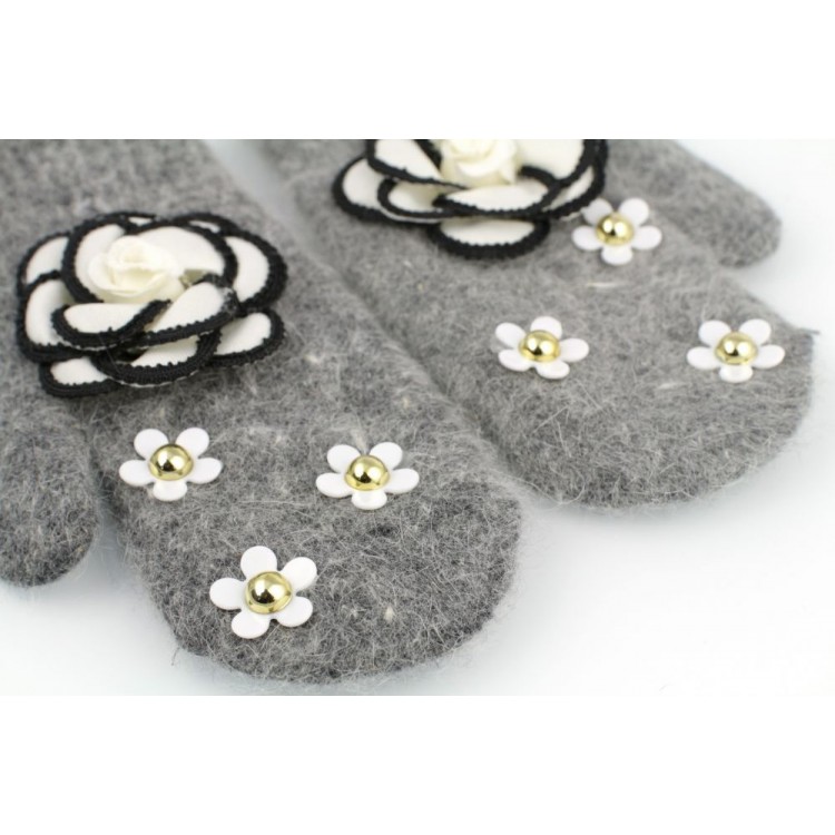 Rękawiczki posiadają delikatne zdobienia z perełek i kwiatuszkami
